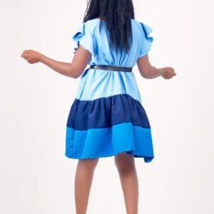 This knee length 3 tiered dress is constructed with different shades of blue fabric. This relaxed, loose-fitting dress is ideal for a casual. Style up the dress with a belt of your choice and heels for a more formal look.