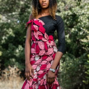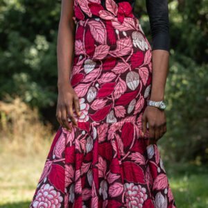 Red Ankara Gown with Flower